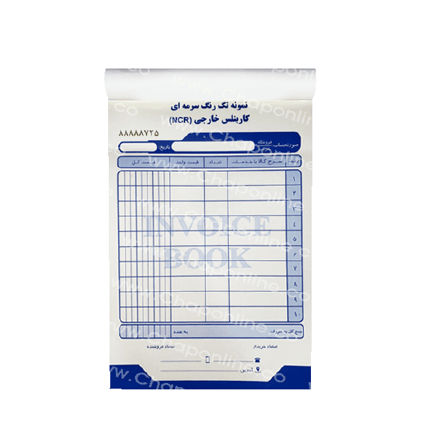 محصولات تصادفی فاکتور تحریر(خارجی) غیر رسمیوجه :یکروتیراژ :5000 عددگرماژ :70 گرمسایز :A4 (297×210 میلیمتر)تحویل :10 روز کاریطراحی :بدون طراحی سفارش دهید 12,548,80010,912,000تومانفاکتور تحریر(خارجی) غیر رسمیوجه :یکروتیراژ :2000 عددگرماژ :70 گرمسایز :B6 (176×125 میلیمتر)تحویل :10 روز کاریطراحی :بدون طراحی سفارش دهید 2,764,6002,404,000تومانفاکتور تحریر(خارجی) غیر رسمیوجه :یکروتیراژ :2000 عددگرماژ :70 گرمسایز :A6 (148×105 میلیمتر)تحویل :10 روز کاریطراحی :بدون طراحی سفارش دهید 2,484,0002,160,000تومانفاکتور تحریر(خارجی) غیر رسمیوجه :یکروتیراژ :5000 عددگرماژ :70 گرمسایز :B5 (250×176 میلیمتر)تحویل :10 روز کاریطراحی :بدون طراحی سفارش دهید 7,879,8006,852,000تومان