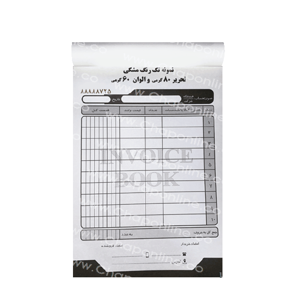محصولات تصادفی فاکتور تحریر(خارجی) غیر رسمیوجه :یکروتیراژ :1000 عددگرماژ :70 گرمسایز :A4 (297×210 میلیمتر)تحویل :10 روز کاریطراحی :بدون طراحی سفارش دهید 3,781,2003,288,000تومانفاکتور تحریر(خارجی) غیر رسمیوجه :یکروتیراژ :2000 عددگرماژ :70 گرمسایز :B4 (353×250 میلیمتر)تحویل :10 روز کاریطراحی :بدون طراحی سفارش دهید 6,596,4005,736,000تومانفاکتور تحریر(خارجی) غیر رسمیوجه :یکروتیراژ :5000 عددگرماژ :70 گرمسایز :A5 (210×148 میلیمتر)تحویل :10 روز کاریطراحی :بدون طراحی سفارش دهید 8,091,4007,036,000تومانفاکتور تحریر(خارجی) غیر رسمیوجه :یکروتیراژ :1000 عددگرماژ :70 گرمسایز :A3 (420×297 میلیمتر)تحویل :10 روز کاریطراحی :بدون طراحی سفارش دهید 6,292,8005,472,000تومان